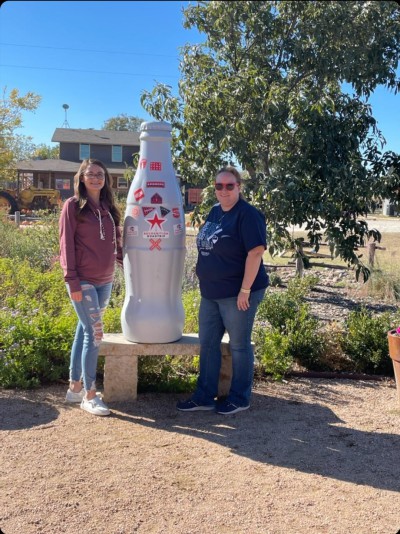 In late 2021, in celebration of the outstanding Coca-Cola Southwest Beverages team and the company’s fifth anniversary, the five-foot bottle embarked on a voyage across CCSWB’s territory. It met hundreds of associates and explored dozens of cities, from the plains of Oklahoma to the beaches of South Padre Island in South Texas. From the mecca of UFO theories in Roswell, NM to Texarkana, the town so nice they named it twice. At each stop, our local heroes left their mark with a custom sticker representing their city on the bottle.
